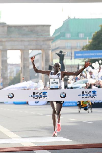 Quella vissuta a Berlino è una giornata storica non solo per la maratona, ma per tutta l’atletica leggera. Il record mondiale stabilito dal kenyano Dennis Kimetto in 2h02’57” non solo abbatte un muro, quello dell 2h03’ che sembrava invalicabile, non solo cancella definitivamente la differenziazione tra il primato e la miglior prestazione mai corsa sui 42,195 km (che apparteneneva a Geoffrey Mutai per la controversa Maratona di Boston in 2h03’02” mentre il primato del kenyano Wilson Kipsang a Berlino era 2h03’23”) ma segna un limite impressionante per il ritmo della gara di Kimetto, basti pensare che la media finale è di 2’54”. Kimetto ha corso sempre con il record nel mirino, stimolando di continuo i pacemaker. A metà gara, passata in 1h01’45” erano ancora una decina in testa, poi la selezione naturale ha visto Kimetto isolarsi al 35° km quando ha mollato la compagnia anche del connazionale Emmanuel Mutai, il suo grande rivale a Chicago 2013 che contava di prendersi la rivincita. Mutai è rimasto sempre vicino a Kimetto e questo ha favorito il finale dei due con 2h02’57” per il nuovo record del kenyano e 2h03’13”, quindi anche lui sotto il vecchio record,per Mutai. Lontanissimi gli altri, pur su tempi di tutto rispetto, con l’etiope Abera Kuma, alla seconda maratona in carriera, terzo in 2h05’565” davanti al campione del mondo di mezza maratona Geoffrey Kipsang Kamworor in 2h06’39” e all’altro kenyano Eliud Kiptanui in 2h07’28”. Solo decimo uno dei grandi favoriti, l’etiope Tsegaye Kebede, stroncato dal ritmo dei kenyani, in 2h10’27”.