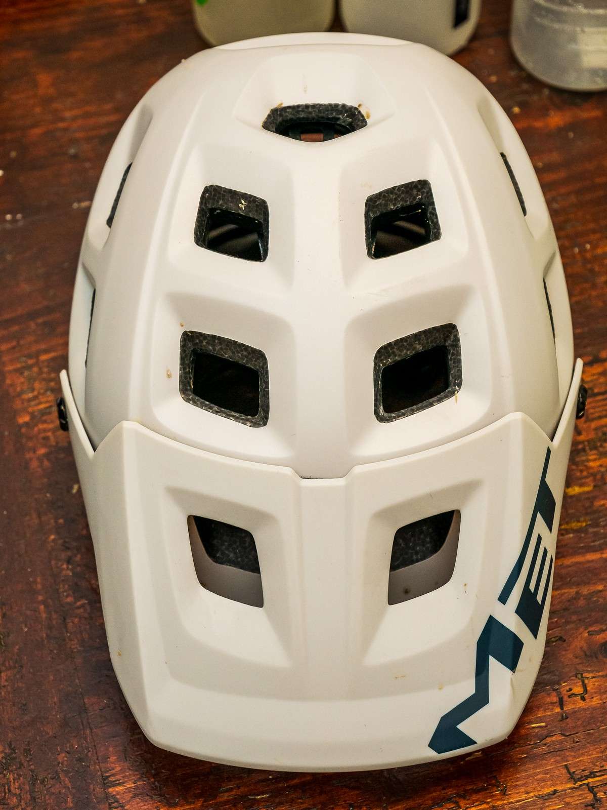Il casco Met Terranova non sorprende, almeno per chi conosce i prodotti del marchio italiano dedicati all’utilizzo trail/enduro. Il look è moderno, con una bella combinazione di linee curve e angoli netti, e con una visiera dalle dimensioni relativamente contenute, che non sporge eccessivamente davanti e che segue le linee dinamiche del casco. La colorazione in test esalta il design moderno e non troppo aggressivo, con il grigio chiaro ben combinato con il profilo inferiore color petrolio.
