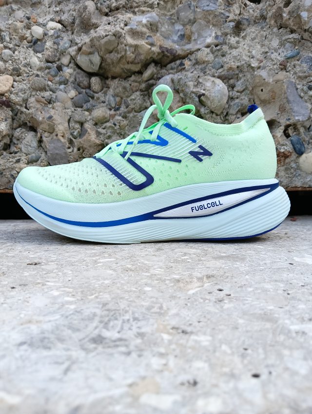 Unboxing molto stimolante perché la New Balance Supercomp Trainer è particolarmente bella. Disponibile al pubblico in due colorazioni, a me è toccata la “Vibrant spring glo con victory blue e vibrant apricot” che, come da foto, risulta un verde chiaro molto figo, con intersuola in FuelCell Foam che richiama il colore principale.