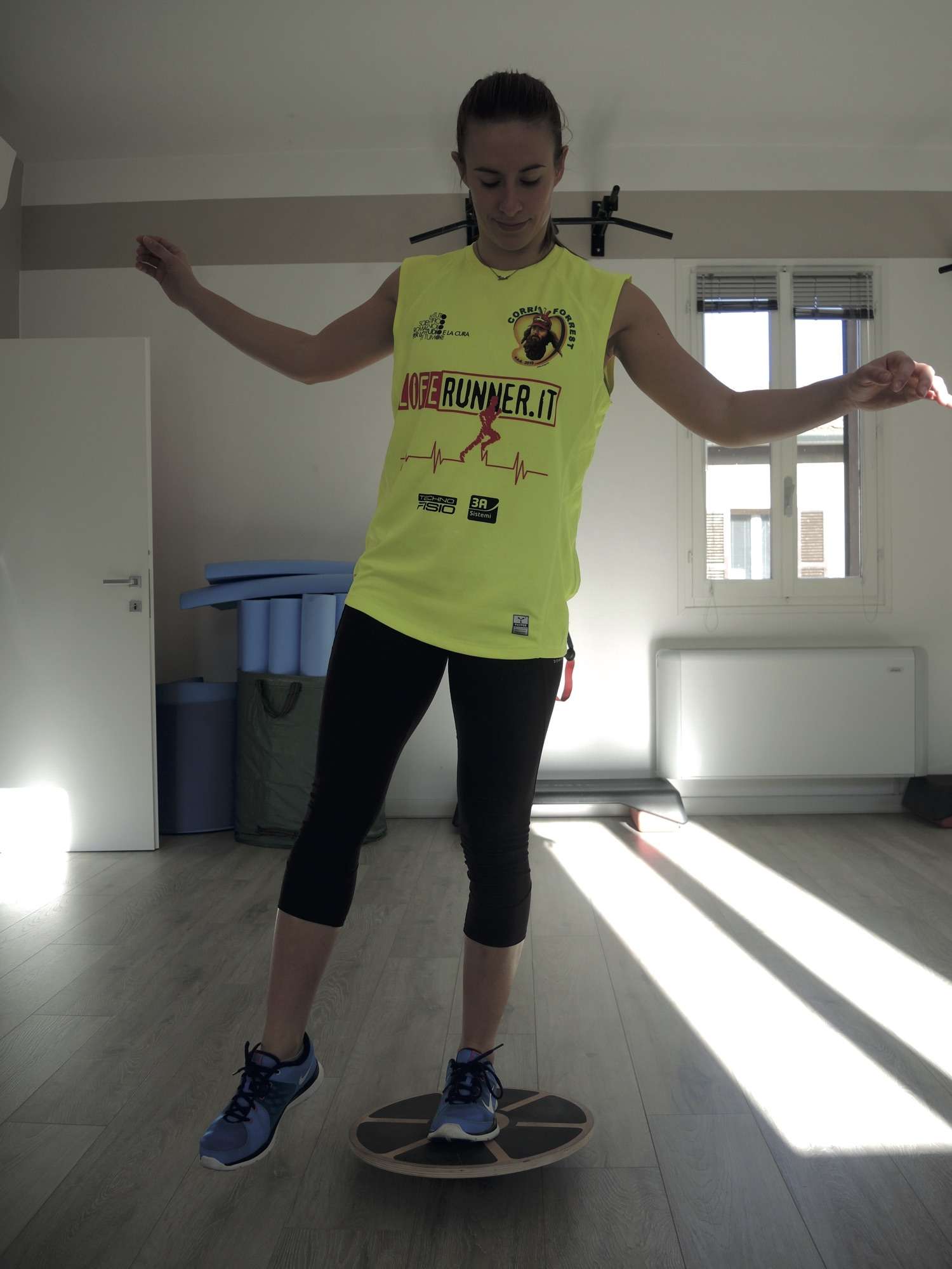 esercizi di equilibrio (a piedi nudi o al massimo con i calzini) per 50/60” ripetuti per 3-4 volte per ogni piede, effettuando delle leggere flessioni del ginocchio,