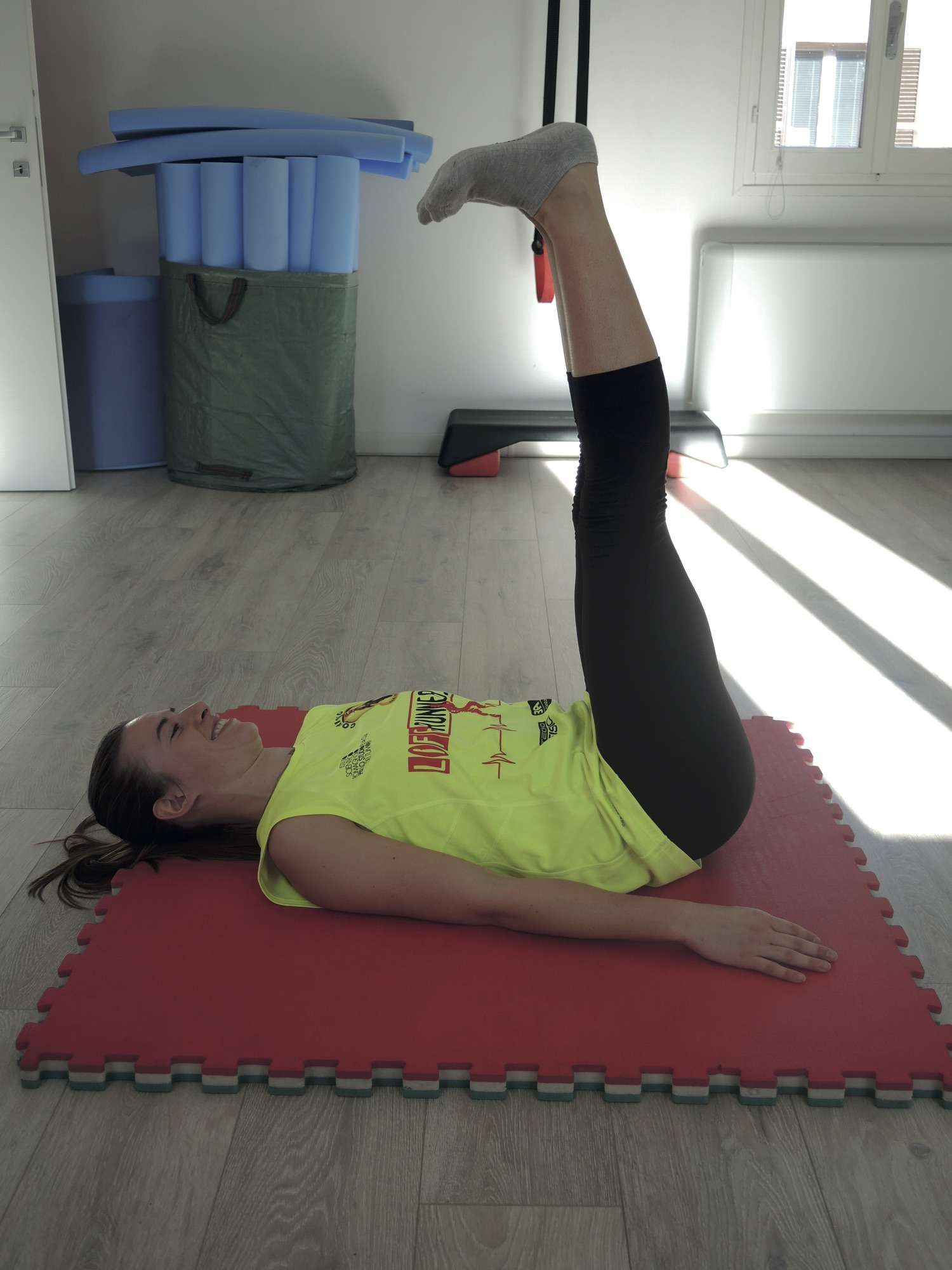 Quello che vi consiglio è di mantenere la seguente postura: schiena a terra con il sedere appoggiato al muro, gambe in squadro, cercando di far rimanere le ginocchia dritte. Ripetere l’esercizio 2×10’ (la mattina e la sera).