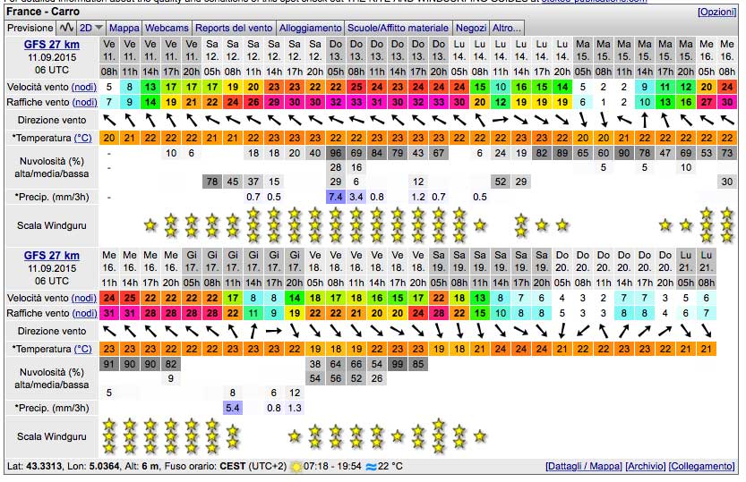 Forti correnti da sud est, ecco cosa si prevede per questo week end. E che bello finalmente poter tornare a guardare le carte del meteo il venerdì e decidere dove andare a prendere due onde… nella migliore delle ipotesi (la stagione balneare ormai sta per finire). La scelta per questo weekend? Beh i sardi si godranno Chia con lo scirocco (che è uno spettacolo). Tutti gli amici del litorale tirrenico da Roma in su, anche loro avranno un po’ di scirocco. Mentre gran parte della popolazione surfista del Nord si sta spostando verso il famoso spot francese di Carro (Marsiglia). La previsione sia per sabato che per domenica è semplicemente perfetta! Se avete voglia di fare qualche chilometro e tempo, sarebbe una trasferta da non perdersi. Un po’ di pioggia, ma direzione vento e onda perfetta! Prevedo che lo spot sarà molto affollato… un consiglio… state sopravvento che ci sono le onde migliori…