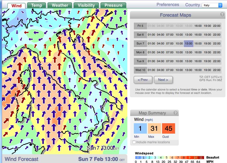 Un bel terno al lotto… dovuto anche alla grossa perturbazione, molto veloce che porterà anche tanta acqua… quindi le previsioni possono mutare in ogni aggiornamento. Ricontrollatele prima di partire e se possibile evitate gli spot con pioggia!